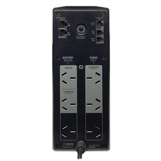 | 纯电涌插座 | 保护二级电子设备免受由于电涌和尖峰造成的损坏,而不会降低用于在停电时为主要电子设备供电的电池功率。 |